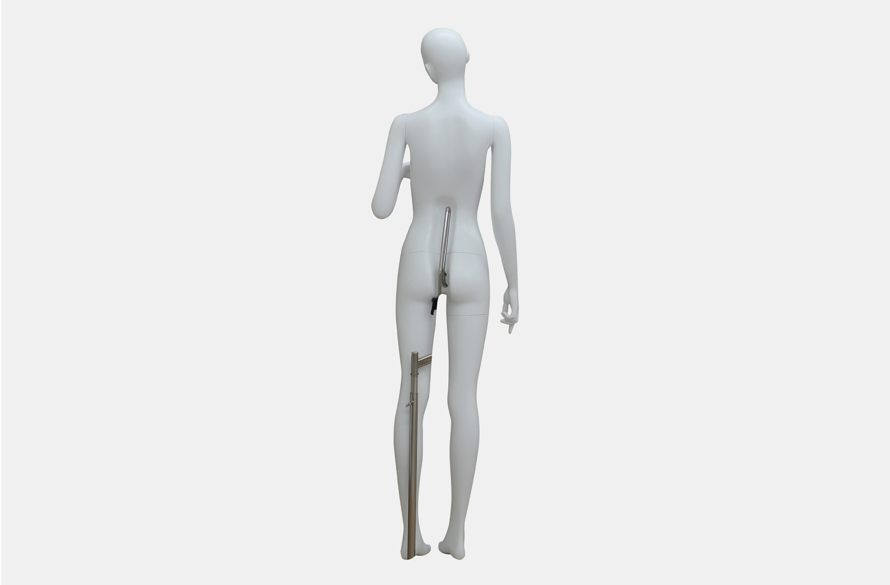 右手はバッグも持たせられる形状になっています。ウィッグ、アイウェア、まつ毛、ピアスの取付が可能な設計により、ブランドイメージやシーズンテーマに合わせた多彩な表現をお楽しみいただけます。