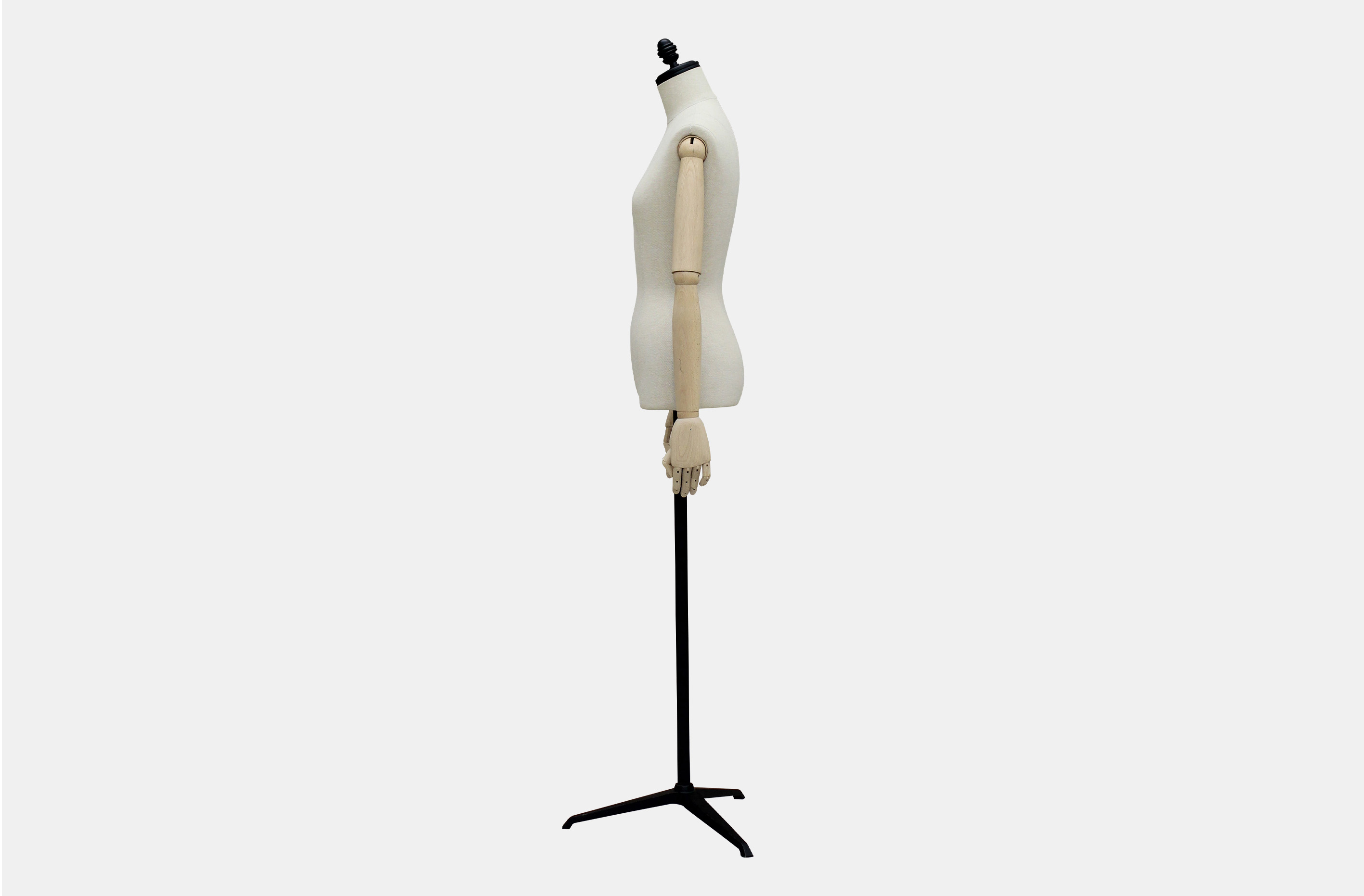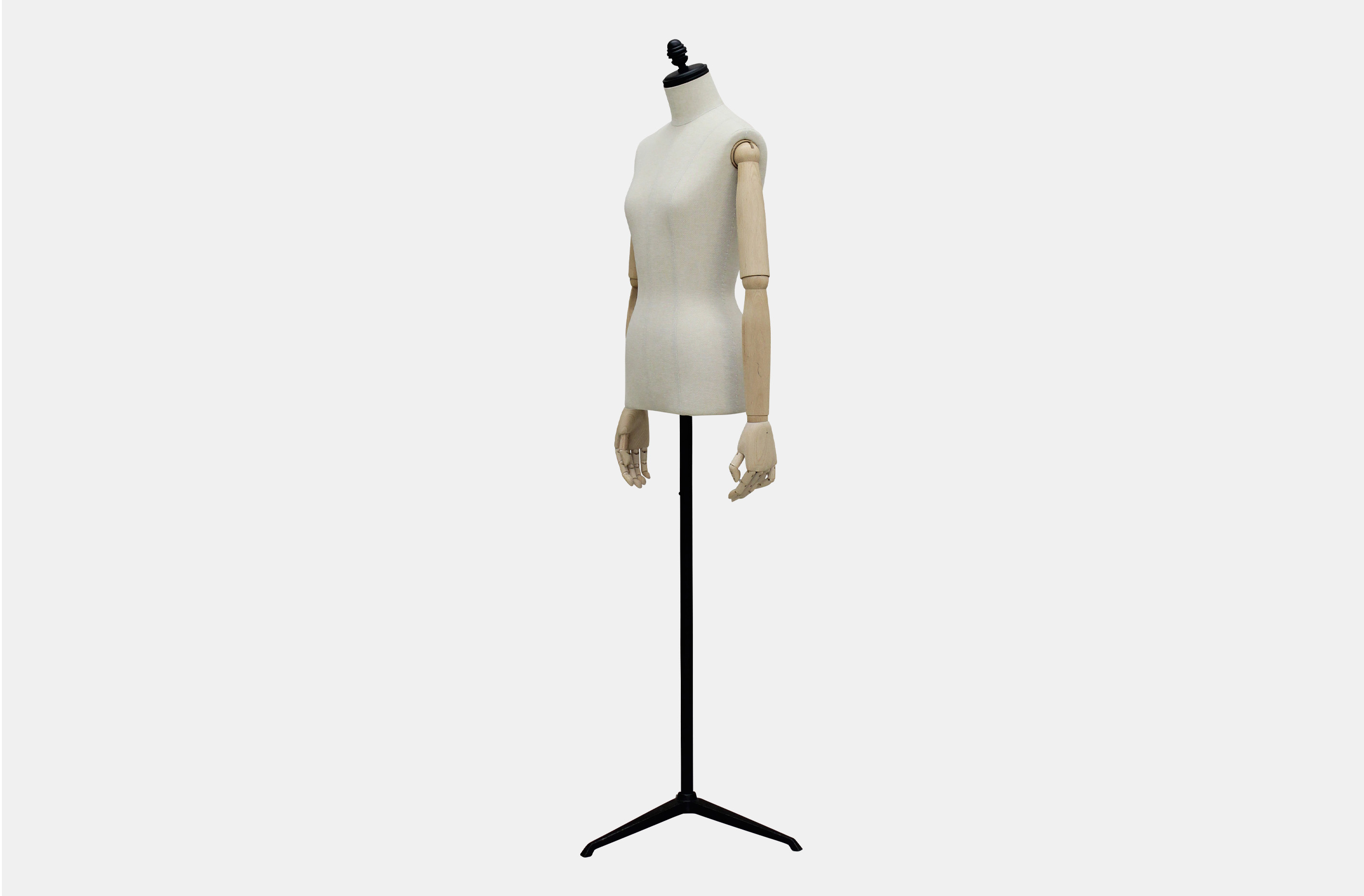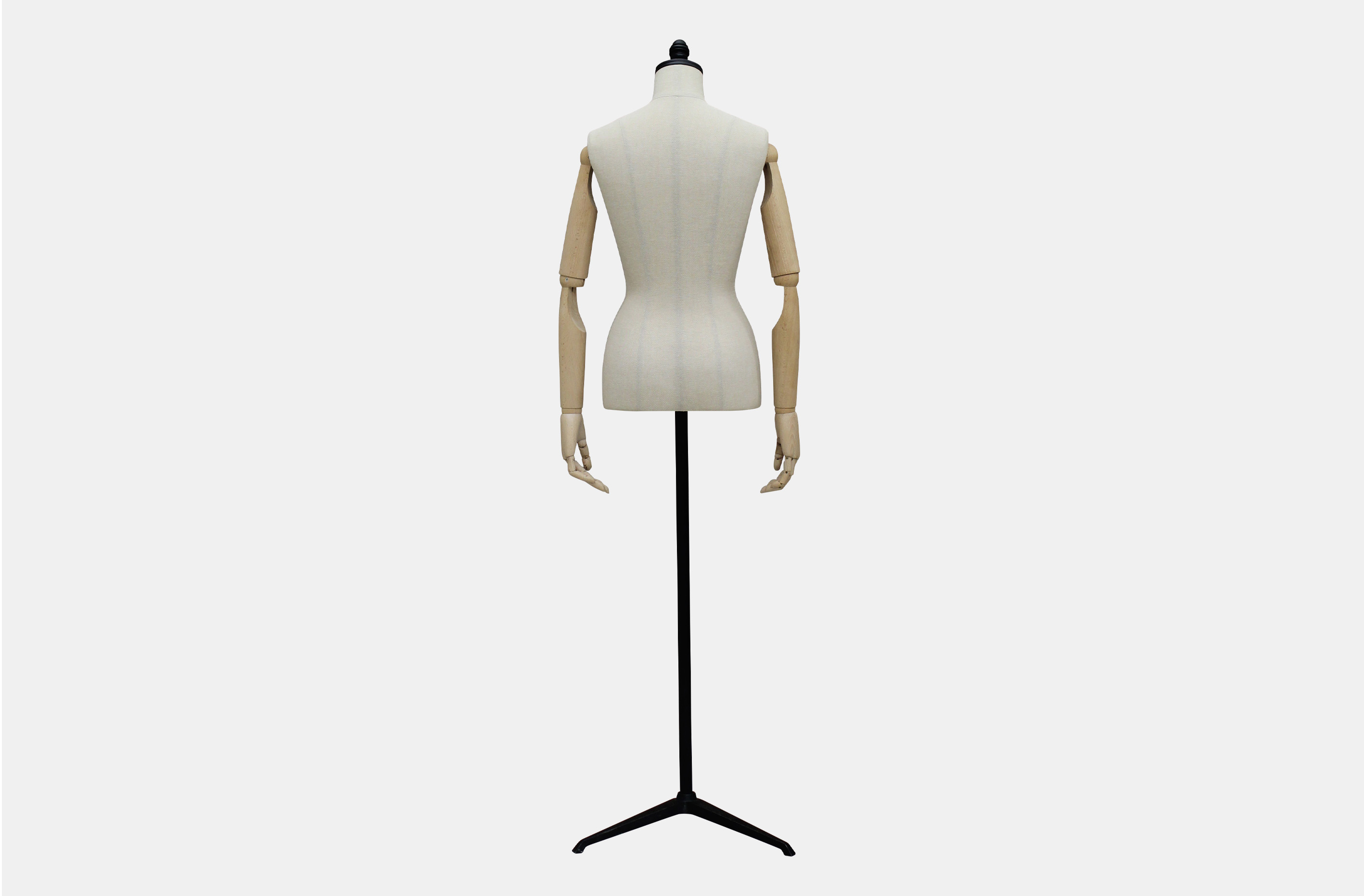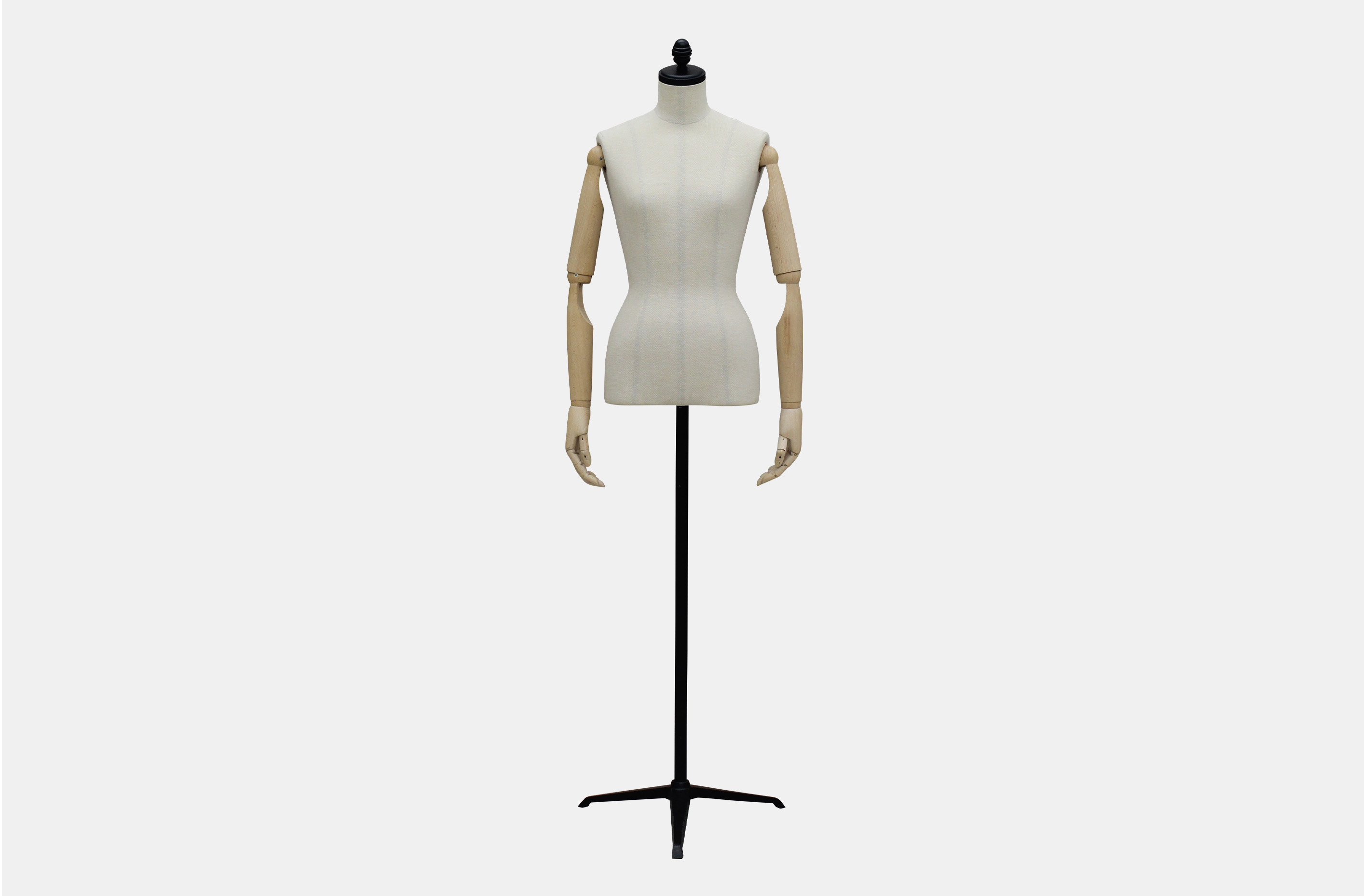クラシックで洗練された雰囲気を持つボディです。ナチュラルな生地貼りボディに、木製の可動腕を組み合わせることで、洋服のシルエットを美しく引き立てるだけでなく、自然なポージングも演出可能です。