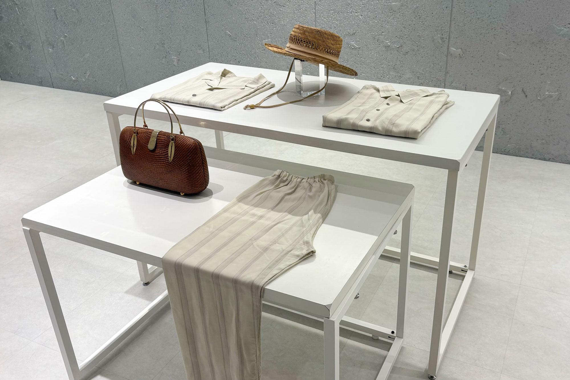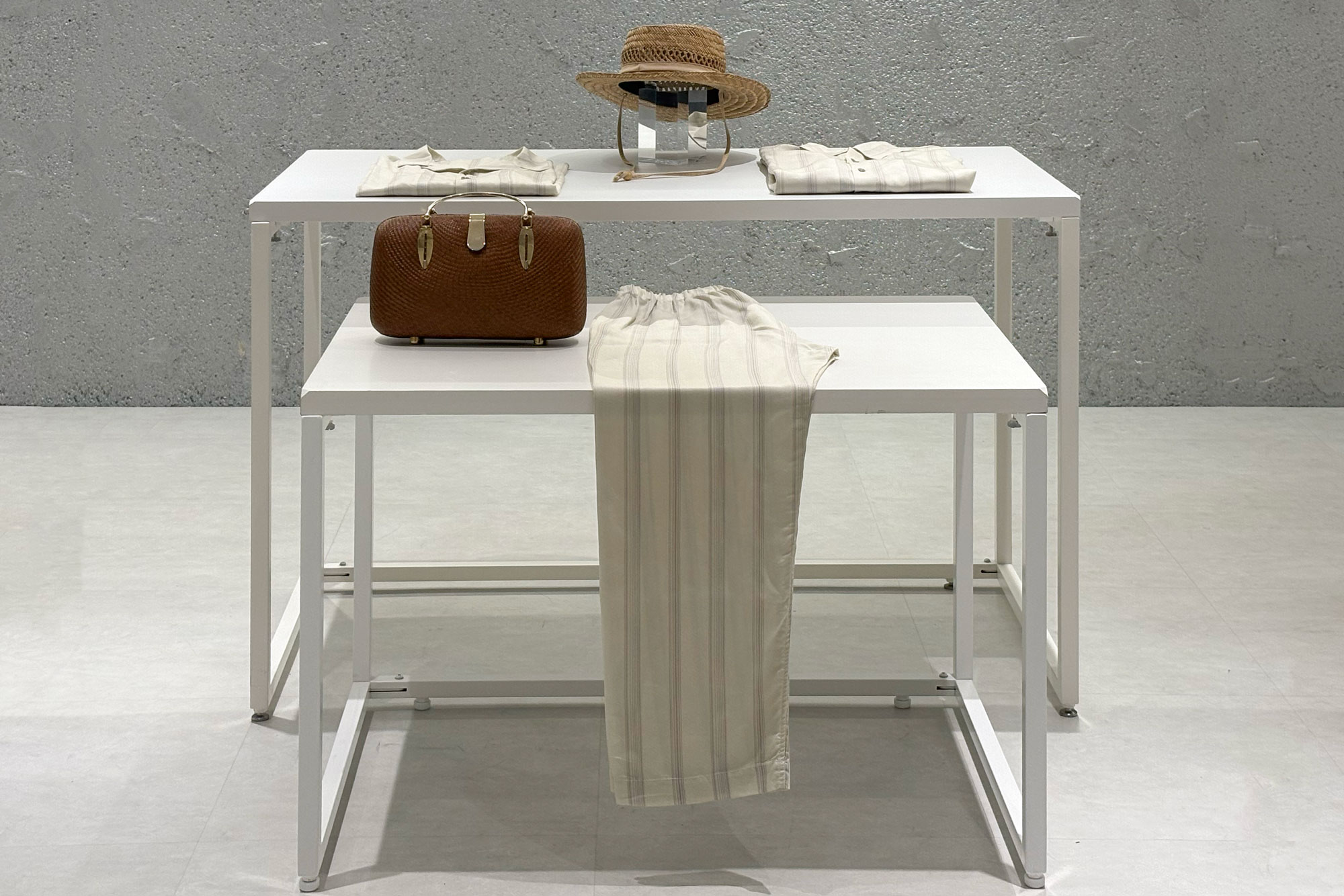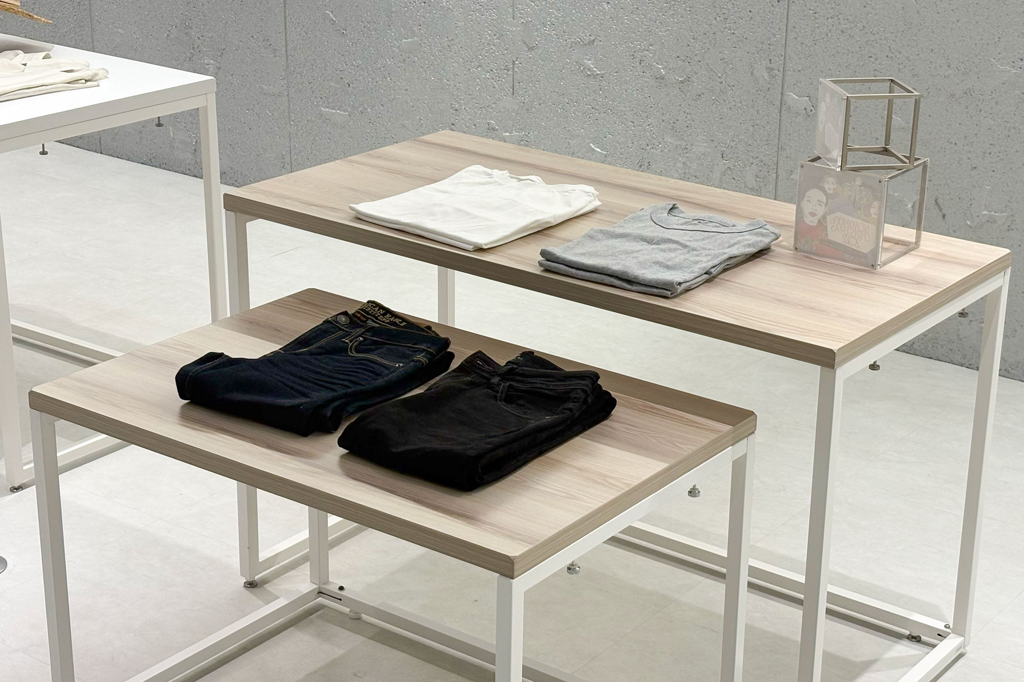 テーブルもスタイリッシュなものにこだわりたい、というブランドに人気のポップアップ什器です。